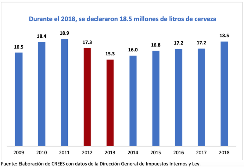 [[{“type”:”media”,”view_mode”:”media_original”,”fid”:”6918″,”attributes”:{“alt”:””,”class”:”media-image”,”style”:”height: 451px; width: 657px;”}}]] En el día de hoy, presentamos una gráfica con la cantidad de cervezas declaradas a final de años desde el 2009-2018. La cerveza fue...