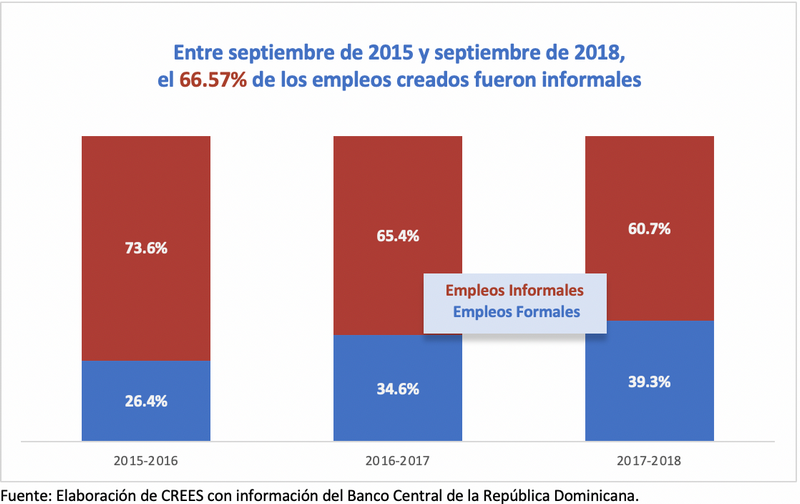[[{“type”:”media”,”view_mode”:”media_original”,”fid”:”6727″,”attributes”:{“alt”:””,”class”:”media-image”,”style”:”height: 414px; width: 657px;”}}]] Entre septiembre de 2015 y septiembre de 2018, los empleos informales representaron en promedio el 66.57% de los empleos creados, mientras que los empleos formales,...