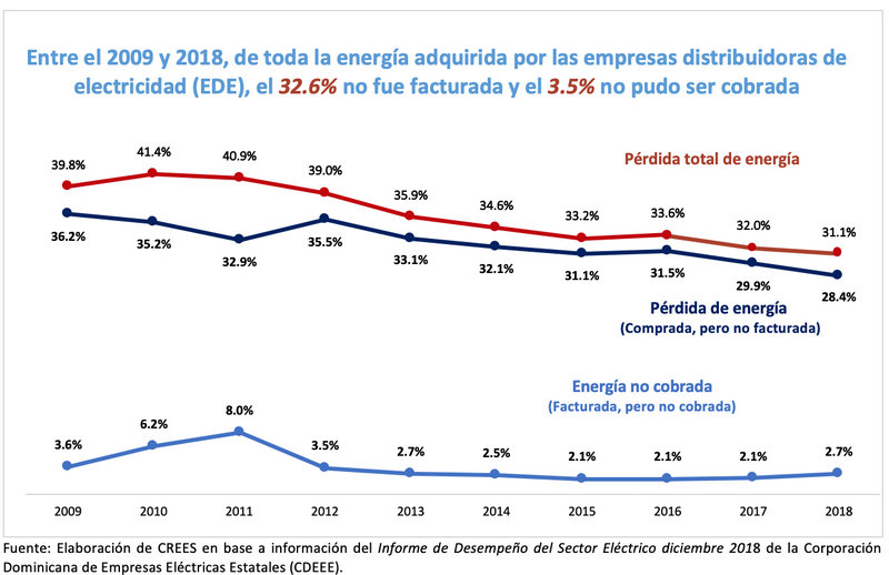 [[{“type”:”media”,”view_mode”:”media_original”,”fid”:”6763″,”attributes”:{“alt”:””,”class”:”media-image”,”style”:”height: 425px; width: 657px;”}}]] Entre el 2009 y 2018, de toda la energía adquirida por las empresas distribuidoras de electricidad (EDE), el 32.6% no fue facturada y el 3.5%...