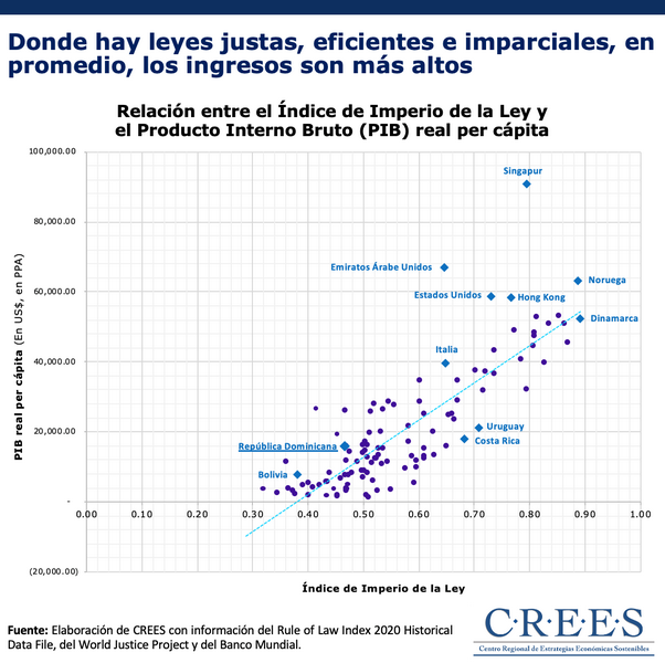 [[{“type”:”media”,”view_mode”:”media_original”,”fid”:”7653″,”attributes”:{“alt”:””,”class”:”media-image”,”style”:”height: 655px; width: 657px;”}}]] #GraficaDelDia La gráfica del día de hoy muestra una relación entre la puntuación en el Índice de Imperio de la Ley 2020 y el Producto...