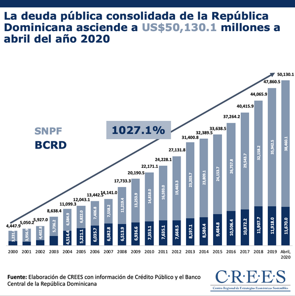 [[{“type”:”media”,”view_mode”:”media_original”,”fid”:”7633″,”attributes”:{“alt”:””,”class”:”media-image”,”style”:”height: 659px; width: 657px;”}}]] La deuda pública consolidada de la República Dominicana aumentó en 1207.1%, es decir, se ha multiplicado más de once veces su valor desde el año...