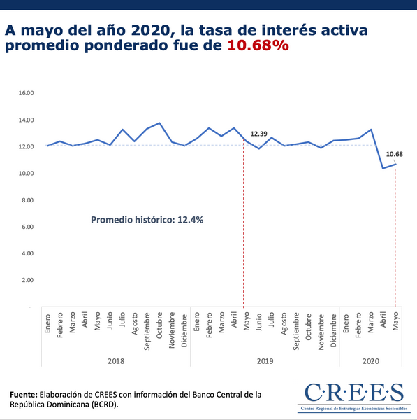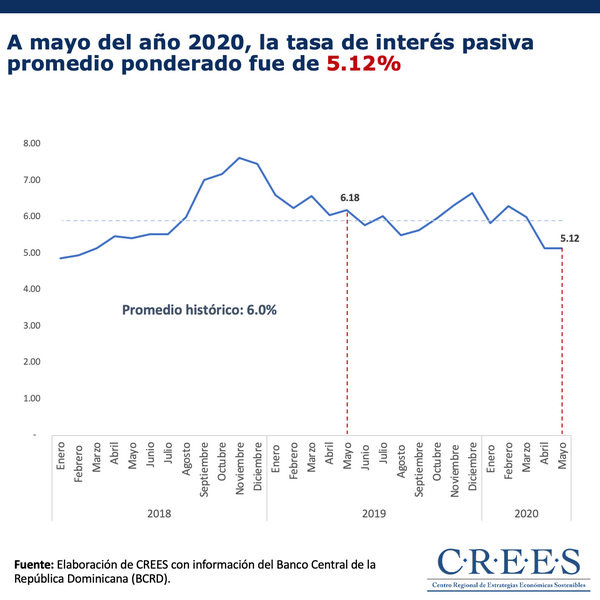 [[{“type”:”media”,”view_mode”:”media_original”,”fid”:”7636″,”attributes”:{“alt”:””,”class”:”media-image”,”style”:”height: 657px; width: 657px;”}}]] En el mes mayo 2020 la tasa de interés pasiva promedio ponderado fue de 5.12%, una disminución de 0.1 puntos porcentuales con relación al promedio...