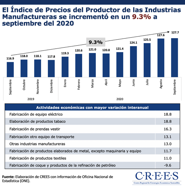 [[{“type”:”media”,”view_mode”:”media_original”,”fid”:”7933″,”attributes”:{“alt”:””,”class”:”media-image”,”style”:”height: 658px; width: 657px;”}}]] En la gráfica del día de hoy se muestra el Índice de Precios del Productor (IPP) de las Industrias Manufactureras desde septiembre del 2019 a...