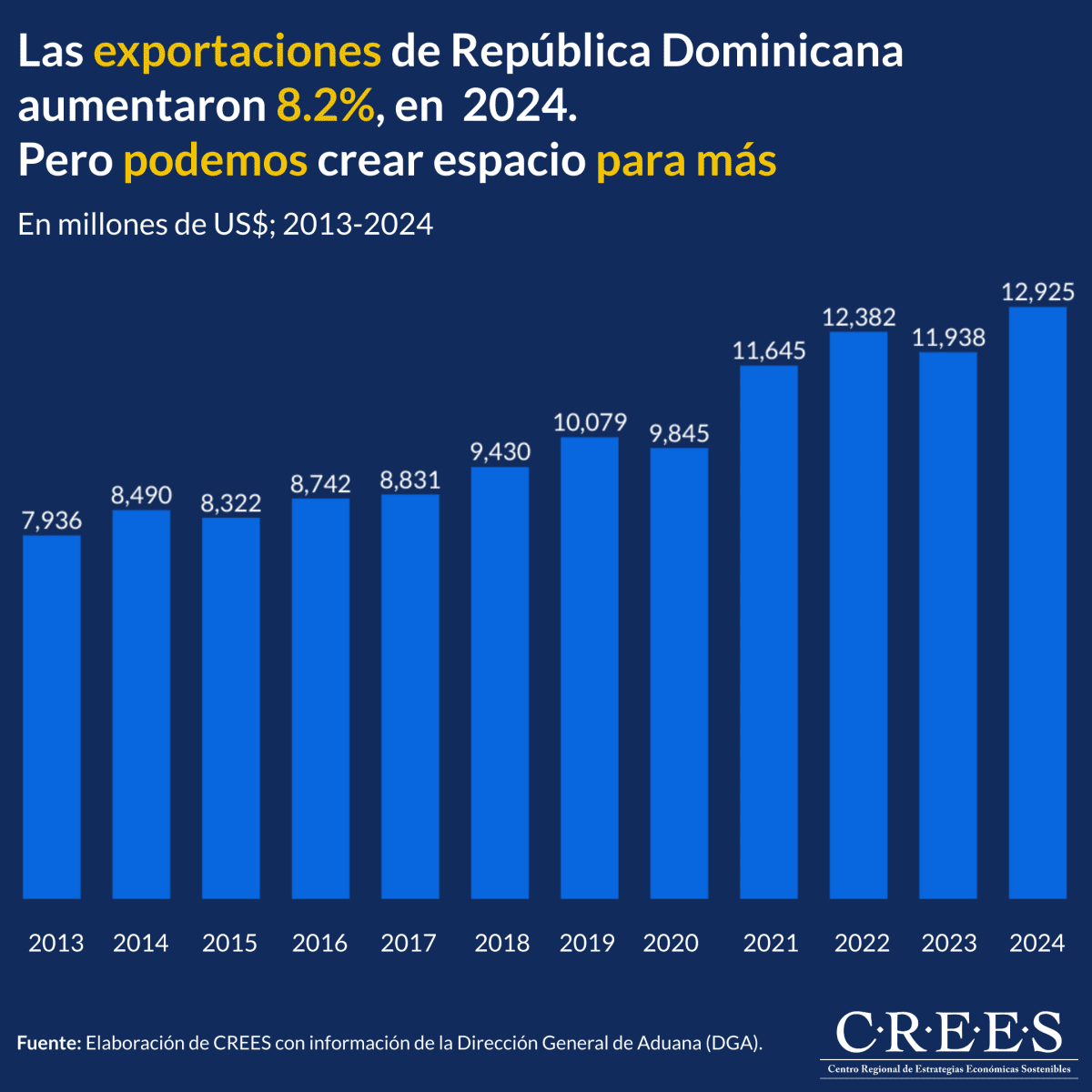 Las exportaciones de República Dominicana aumentaron 8.2%, en 2024. Pero podemos crear espacio para más Las exportaciones totales de la República Dominicana alcanzaron US$12,925.06 millones en 2024, un incremento del 8.26%...