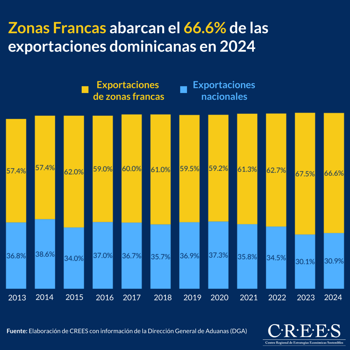 Zonas Francas abarcan el 66.6% de las exportaciones dominicanas en 2024 Las exportaciones de zonas francas en la República Dominicana han ganado más peso dentro del total exportado, alcanzando...