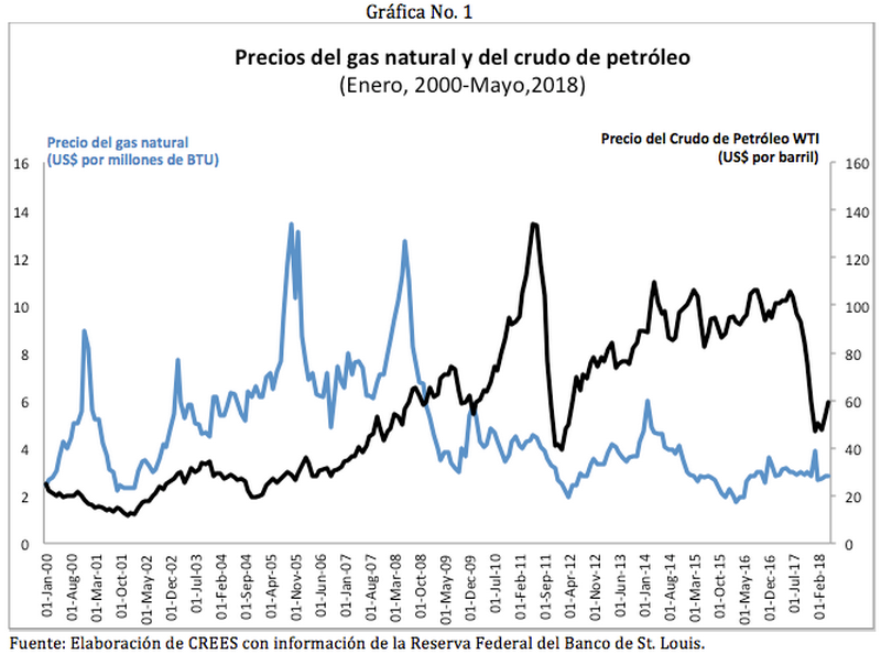 El precio del gas natural se encuentra desde el año 2014 en niveles históricamente bajos. El precio de referencia Henry Hub, ha disminuido de un pico de 12.69 dólares por millón de BTU hasta 2.80, su precio actual. Los precios actuales no se habían visto desde finales del siglo pasado.