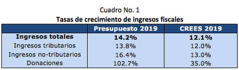 5- El Proyecto de Presupuesto General del Estado 2019 asume que la presión tributaria sería de 14.8%; en CREES estimamos que será de 14.6% por menores ingresos proveniente de los impuestos. La presión tributaria estimada por las autoridades para 2018 sería de 14.2%