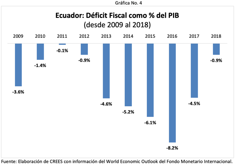 A principios de marzo pasado, el Directorio Ejecutivo del Fondo Monetario Internacional (FMI) aprobó un acuerdo a favor de Ecuador por US$4,200 millones. El acuerdo está enfocado en mejorar la posición fiscal del país. En efecto, Ecuador acudió al FMI luego de cinco años con déficits fiscales que, en promedio, representaron 5% del PIB.