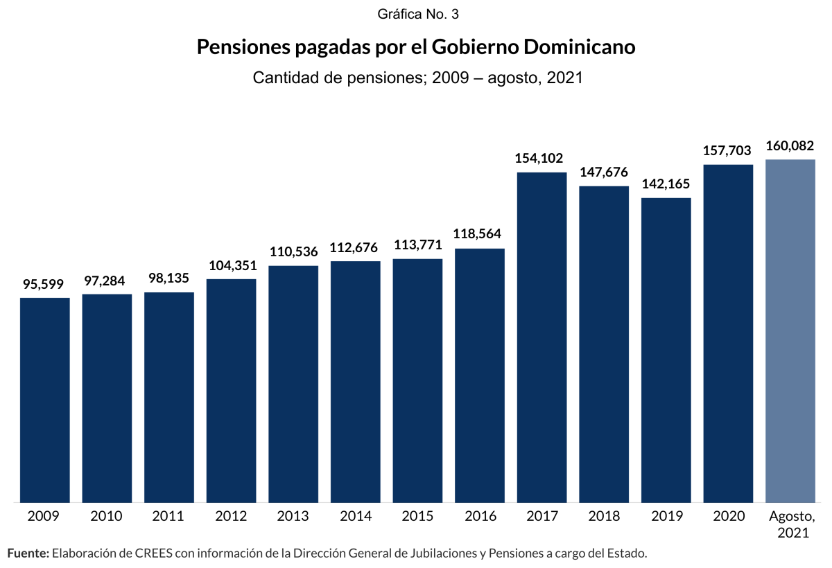 Con respecto a los jubilados, la cifra es mayor en la actualidad que a final de 2018. La cifra ha pasado de 147,676 a 160,037, según el dato de agosto. El aumento en el número de pensionados en la Dirección General de Jubilaciones y Pensiones se viene verificando desde el año 2019.