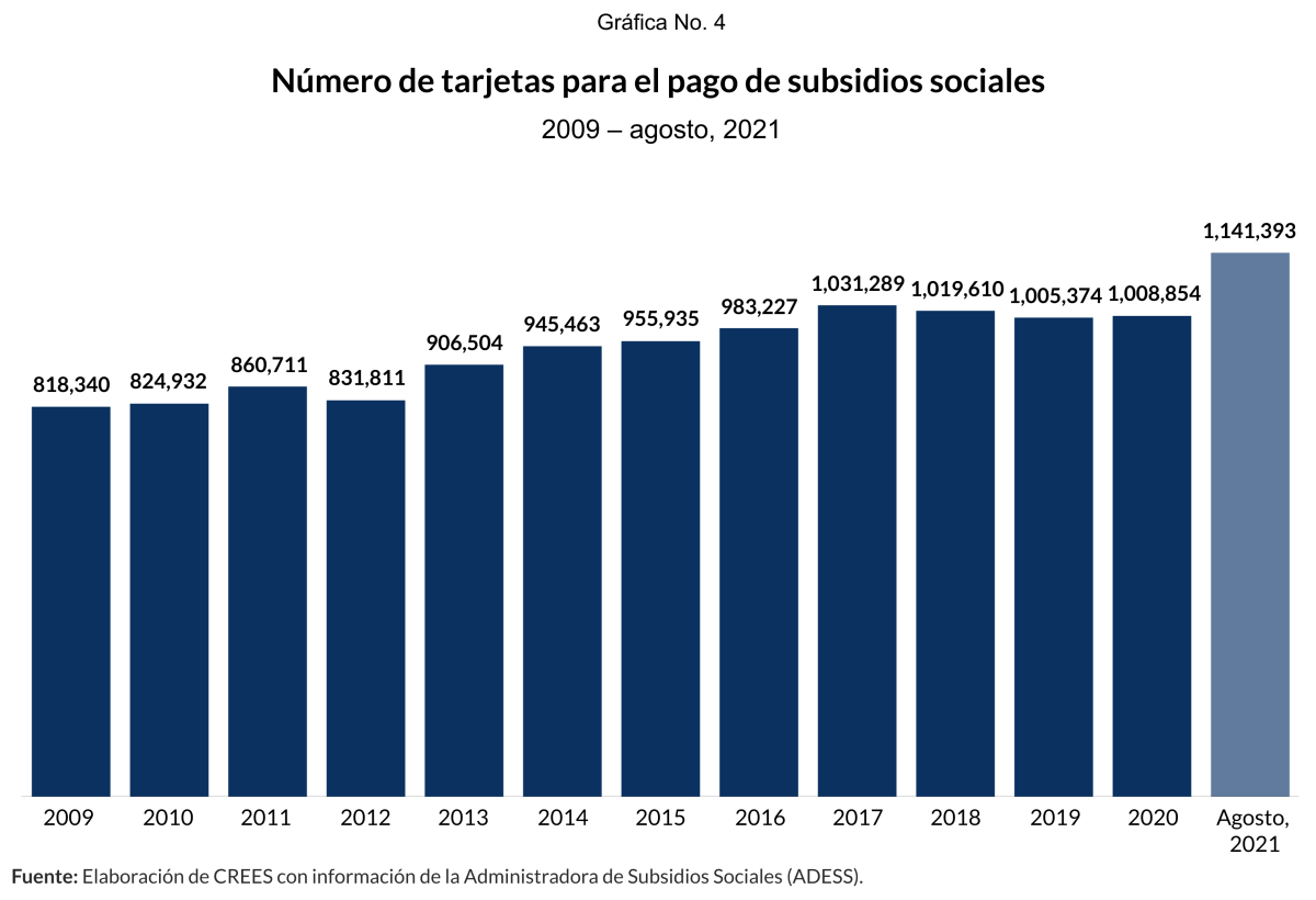 Los trabajadores, los pensionados y el total de receptores (individuales y miembros de familia) de subsidios monetarios representan 4.2 millones. El monto de receptores que hemos calculado representa el 40.2% de la población de 2021 estimada por la Oficina Nacional de Estadísticas.