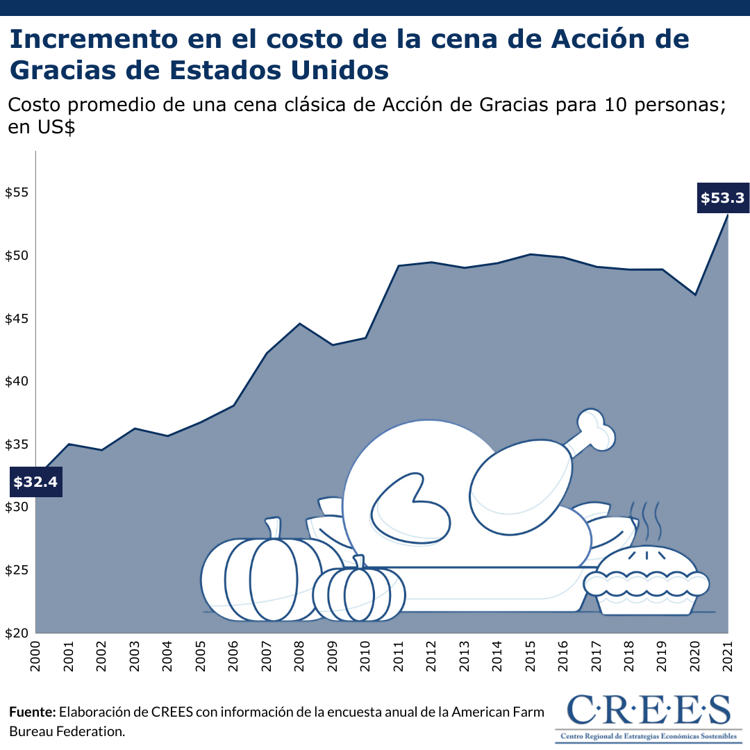Como consecuencia de las políticas monetaria y fiscal expansivas que ha asumido el gobierno estadounidense para hacerle frente a la pandemia de COVID-19, así como la disminución de la producción provocada por la misma, las familias experimentarán incrementos en el costo de su cena de Acción de Gracias.