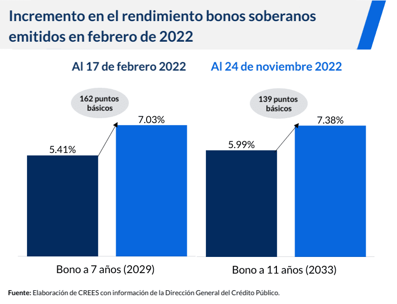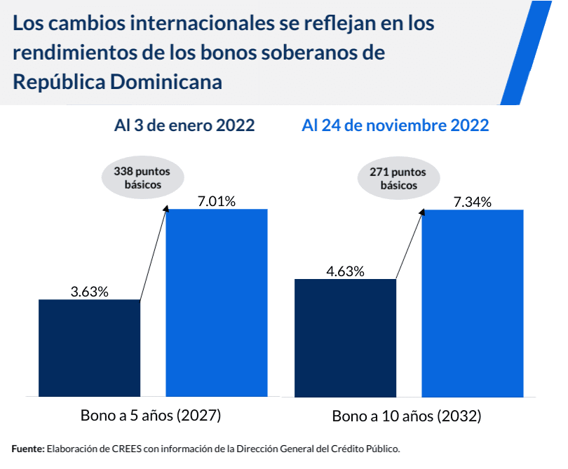 En vista de las condiciones cambiantes en el mundo, con la prima de riesgo que demandan los inversionistas para comprar bonos soberanos en los mercados emergentes (riesgo país) aumentando, lo que significa que el costo de emitir nueva deuda para República Dominicana será mayor; el endeudamiento público cada vez implicará un mayor consumo de ingresos corrientes. El impacto del entorno internacional en las finanzas públicas de la República Dominicana pone en evidencia la necesidad iniciar cuanto antes un proceso de consolidación fiscal. Esta consolidación fiscal debe estar basado en tres elementos: