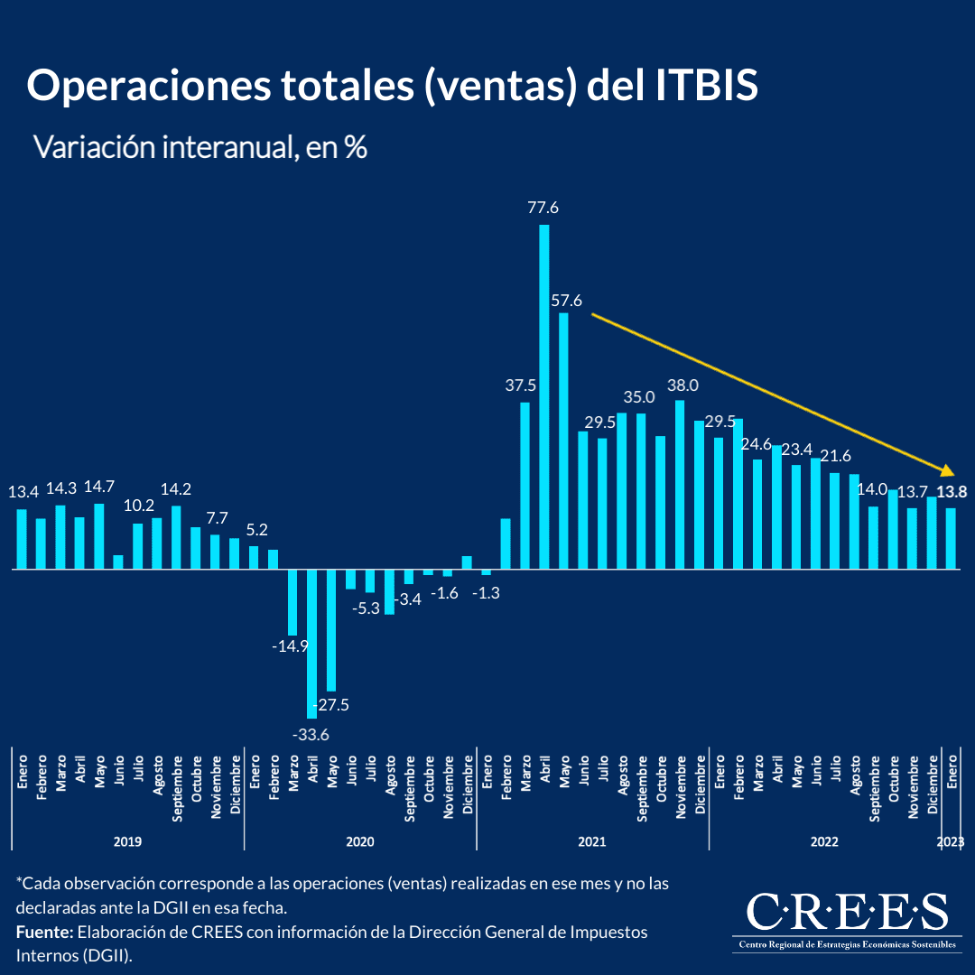Las operaciones totales representan las ventas de los bienes y servicios que se consumen a lo interno de la economía y la producción que se dedica a la exportación. Esta variable incluye las operaciones gravadas con el ITBIS y aquellas que están exentas de dicho gravamen. En consecuencia, las ventas u operaciones reportadas actúan como un indicador para evaluar el estado de la economía.
