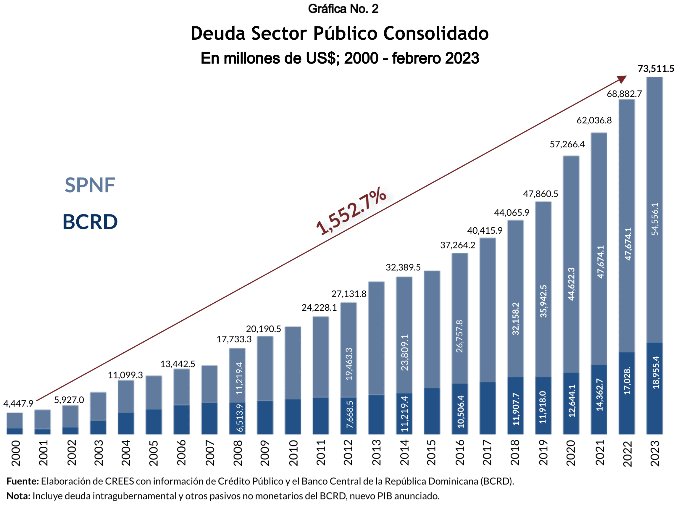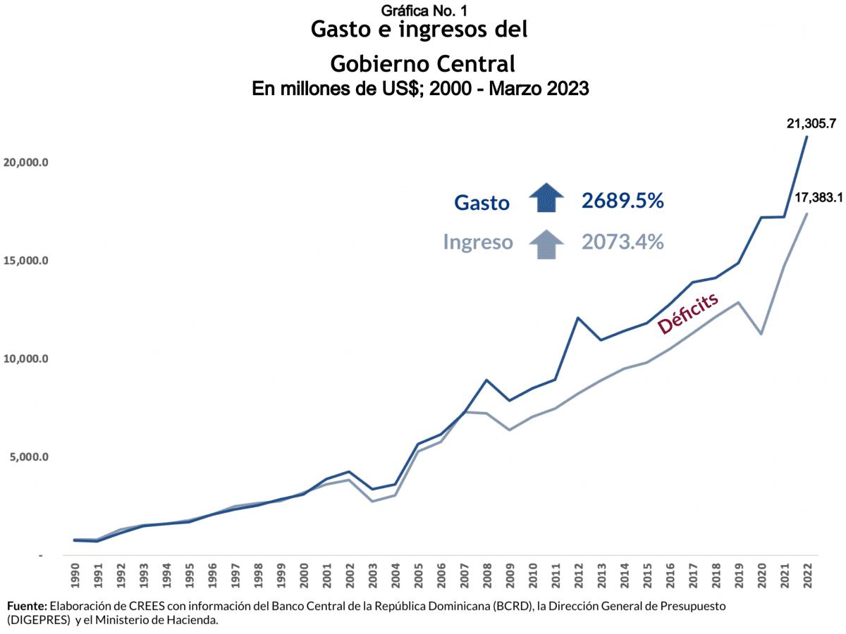 Aprovechando la reducción en las tasas de interés de la Reserva Federal de los Estados Unidos, y la liquidez creada por ese y los demás bancos centrales del mundo, muchos gobiernos incrementaron su gasto y, en consecuencia, el monto de la deuda pública. Los excesos monetarios internacionales permitieron a los gobiernos acudir de forma más fácil, y relativamente menos costosa, a los mercados de deuda para financiar los aumentos de gasto. En República Dominicana, el gasto público como porcentaje del PIB pasó de 16.7% en 2019 a 18.7% en 2022. El gasto por habitante también se incrementó de US$1,435.9 a US$2,005.8, otra forma de ver su peso relativo.