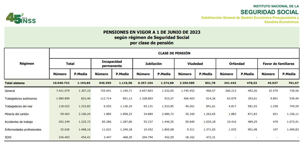En España, que cuenta con un sistema de reparto, con datos proporcionado por la Seguridad Social, a 1 de junio de 2023, si consultamos el apartado de Pensiones en vigor a 1 de junio de 2023 por régimen de Seguridad Social y clase de pensión, podemos comprobar que la pensión media por jubilación de todo el sistema es de 1.374,88 euros.