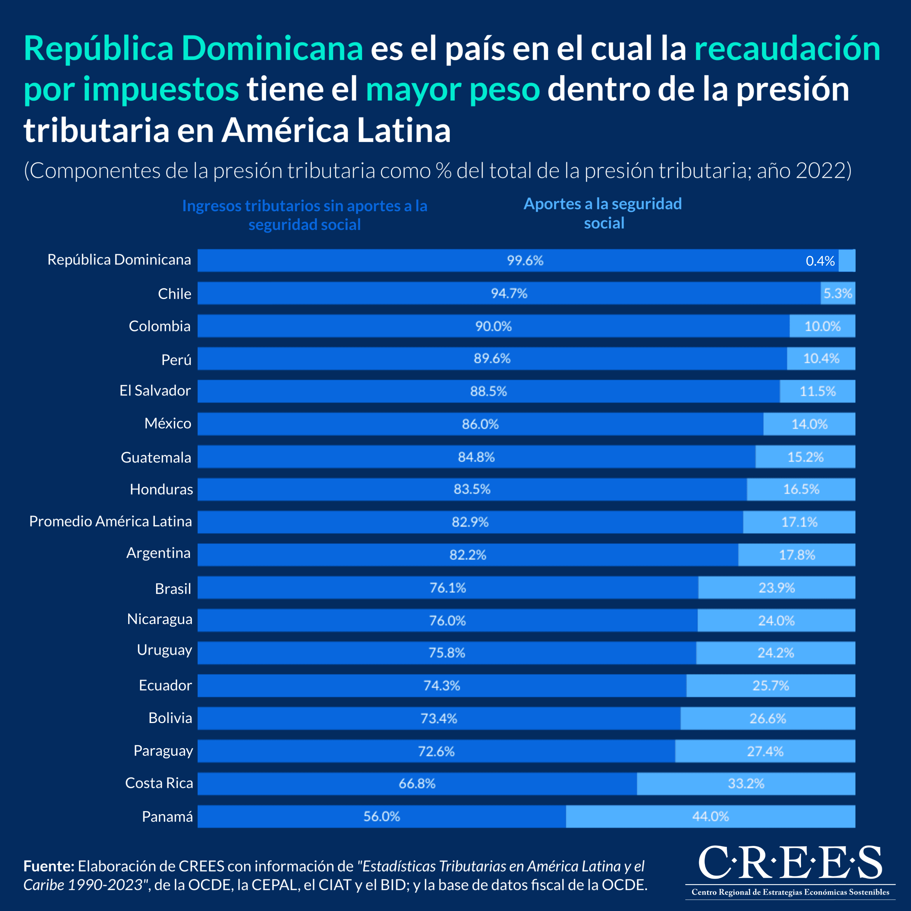 República Dominicana es el país en el cual la recaudación por impuestos tiene el mayor peso dentro de la presión tributaria en América Latina al 2023