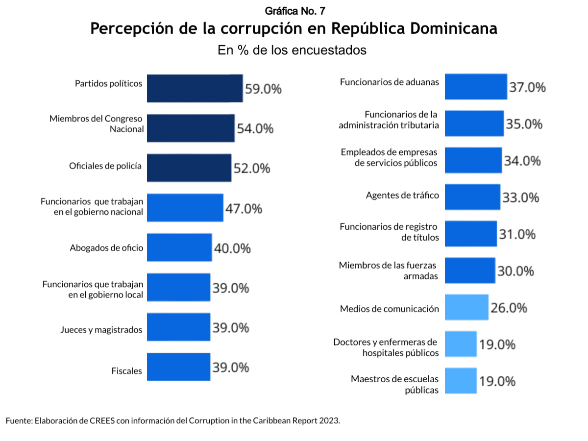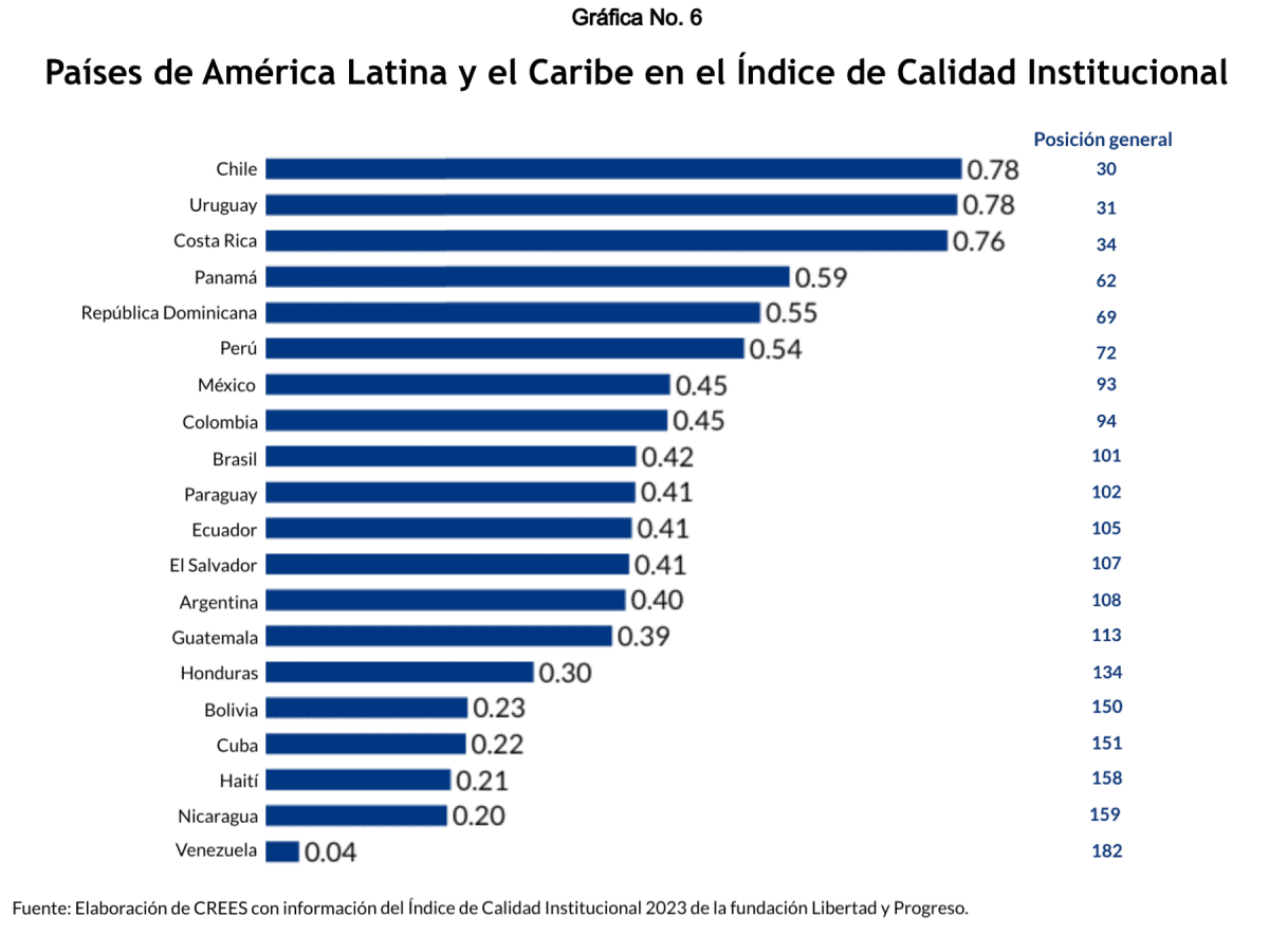 Entendemos, a la luz de los números anteriores, y de las evaluaciones de índices como el Índice Mundial de Innovación, el Índice Internacional de Derechos de Propiedad, el Índice Imperio de la Ley, el Índice de Calidad Institucional y el Reporte de la Corrupción en el Caribe, que República Dominicana todavía tiene reformas pendientes para fortalecer las instituciones.