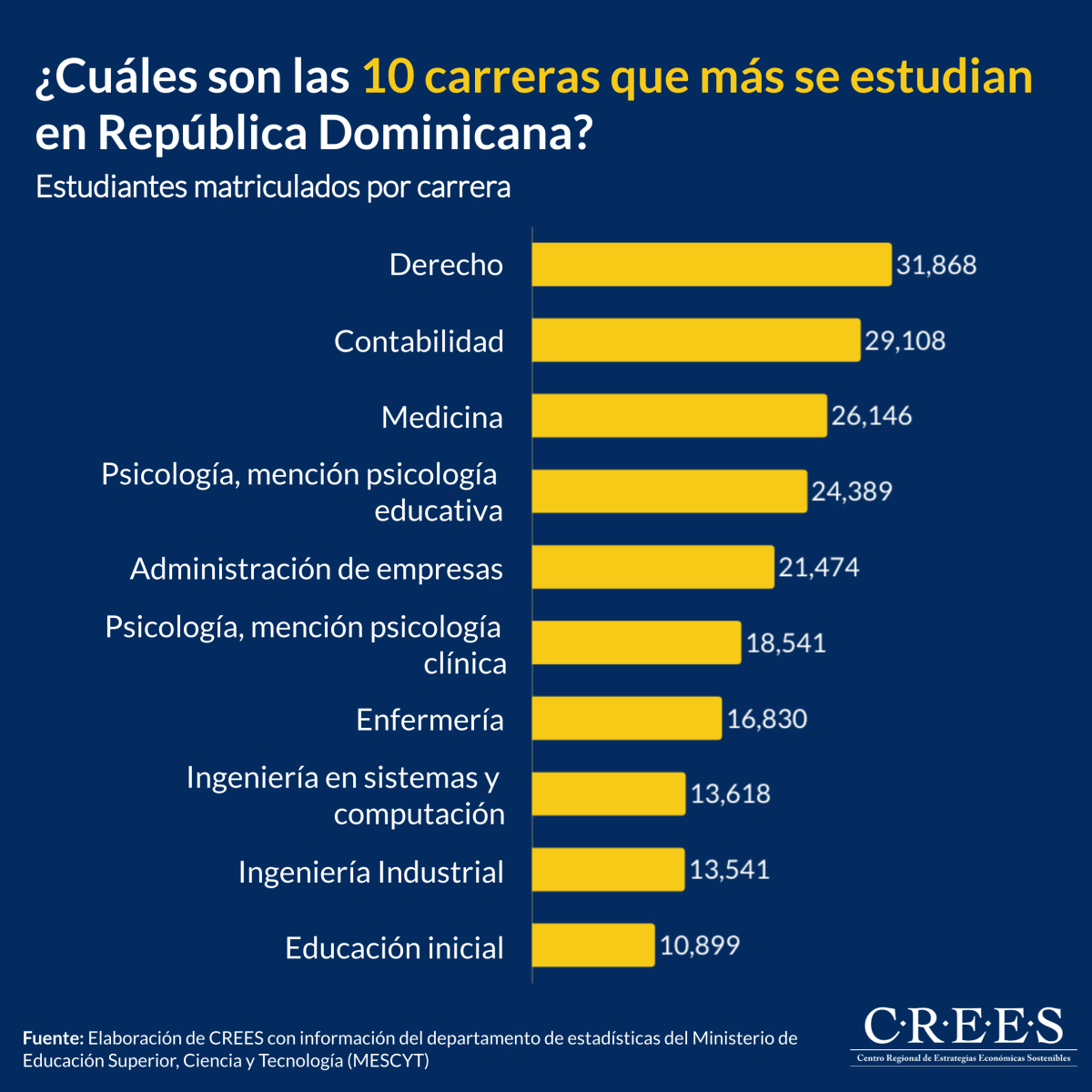 ¿Cuáles son las 10 carreras que más se estudian en República Dominicana?