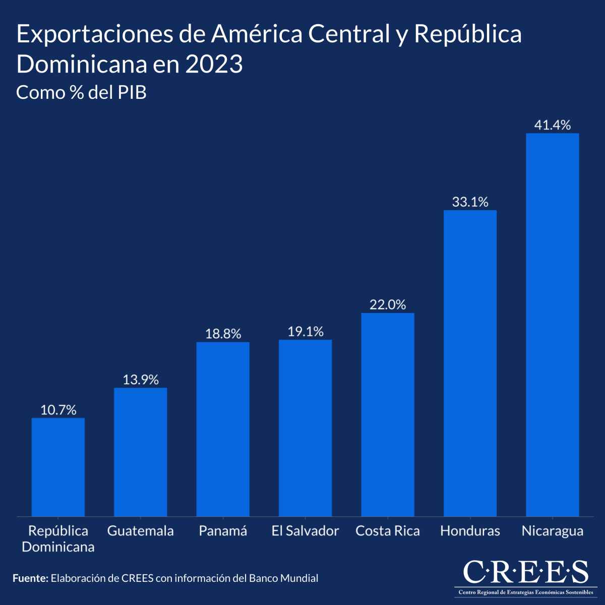 Este promedio regional incluye las economías de Nicaragua, Honduras, Costa Rica, Panamá, El Salvador y Guatemala. En 2023, la República Dominicana se posicionó como el país con la menor proporción de exportaciones en relación con su PIB entre estos países.