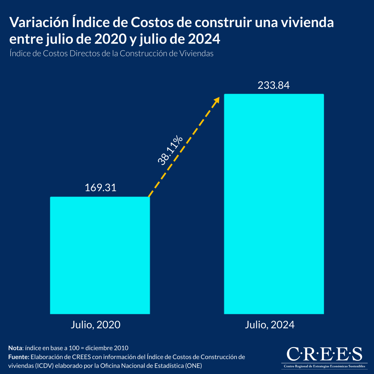 El Índice de Costos Directos de la Construcción de Viviendas (ICDV), elaborado por la Oficina Nacional de Estadística (ONE), mide el costo promedio de construir viviendas unifamiliares de uno y dos niveles, así como multifamiliares de cuatro y ocho niveles. Para calcular este índice, se consideran diversas categorías como herramientas, materiales, subcontratos, mano de obra y maquinaria.