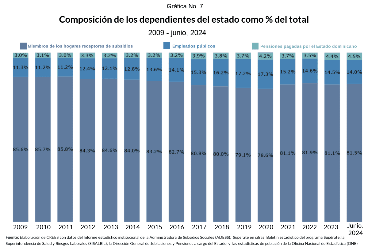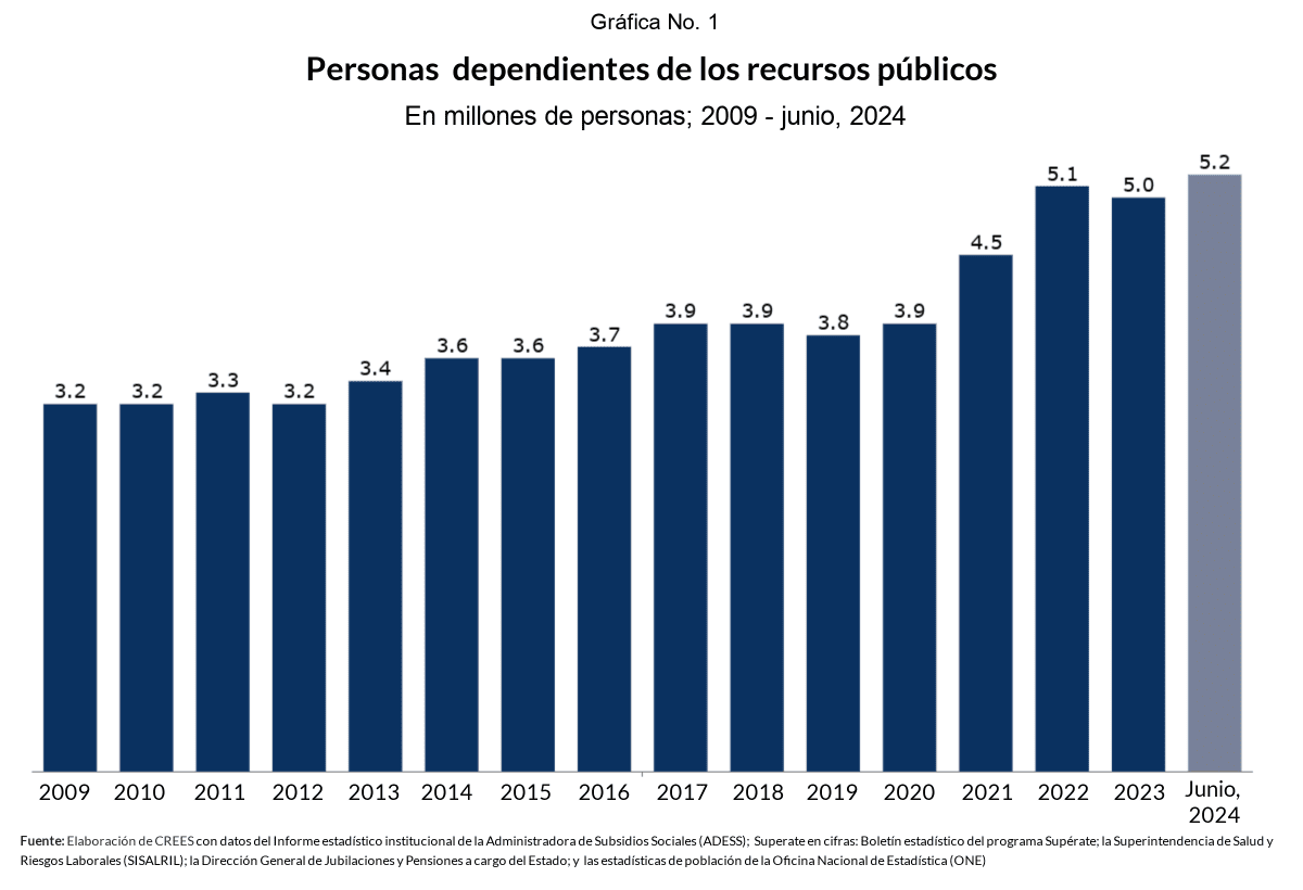 En esta versión del observatorio es importante resaltar, nueva vez, la cantidad de dependientes del gobierno dominicano: 48.5% de la población.