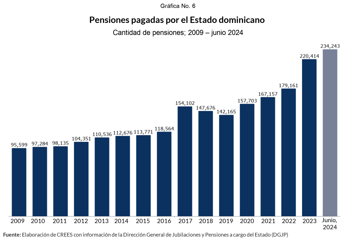 Con respecto a los pensionados, en seis meses el número total aumentó 6.3%. La cifra pasó de 220,414 a 234,243 jubilados, según los datos de junio último. Desde 2020 a junio de 2024, el número de beneficiarios con una pensión creció en 48.5%, un total de 76,540 personas.