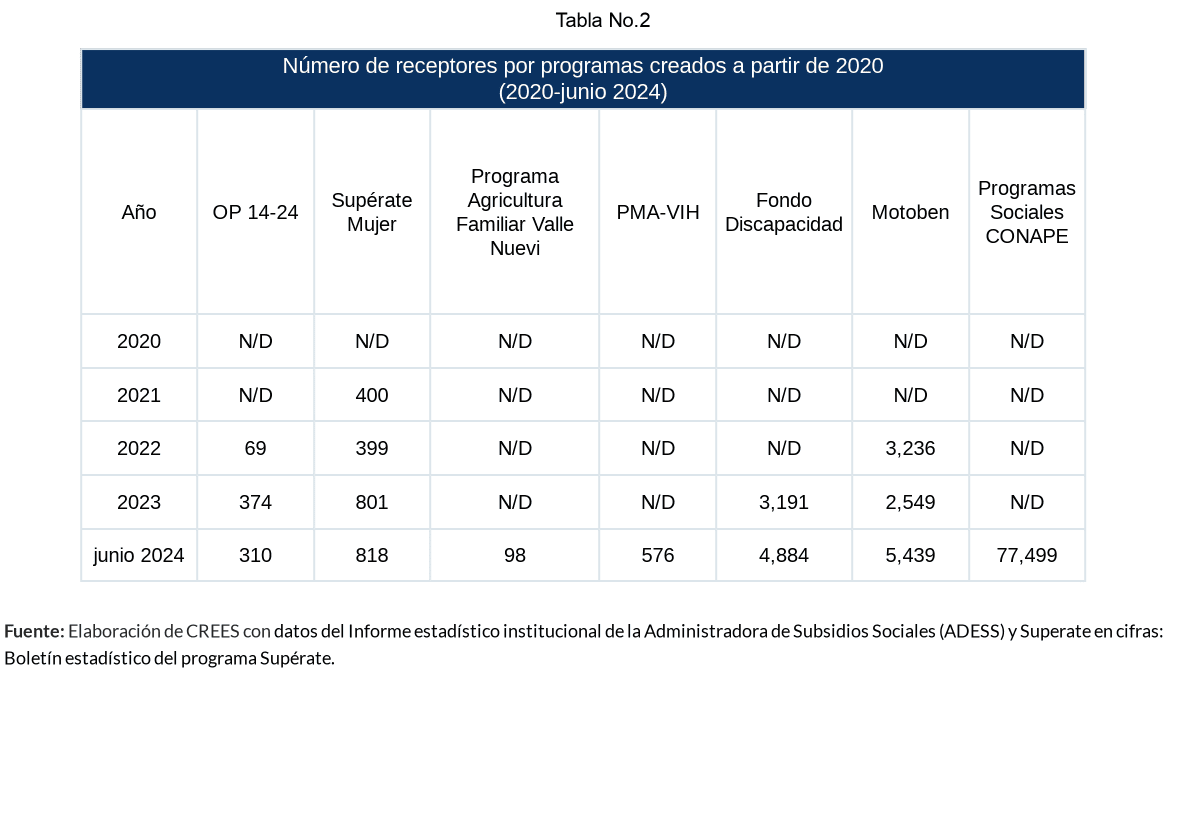 Es importante resaltar que en la actualiad es más diíficil para un ciudadano o investigador poder obtener los datos del número de beneficiarios de las transferencias de los programas pertenecientes a Supérate. En el pasado, los datos estaban disponibles en el sitio web de la Administración de Subsidios Sociales (ADESS), y eran publicados de manera mensual. En consecuencia, para elaborar este informe el número de horas invertido fue superior al de reportes anteriores del observatorio de dependientes que publicamos. Entendemos que, para facilidad de los interesados en las cifras, debe existir una serie de datos históricos, tal como antes estaba disponible en el portal de ADESS. La transparencia es importante, sobretodo cuando se destinan recursos provenientes de los mismos contribuyentes.