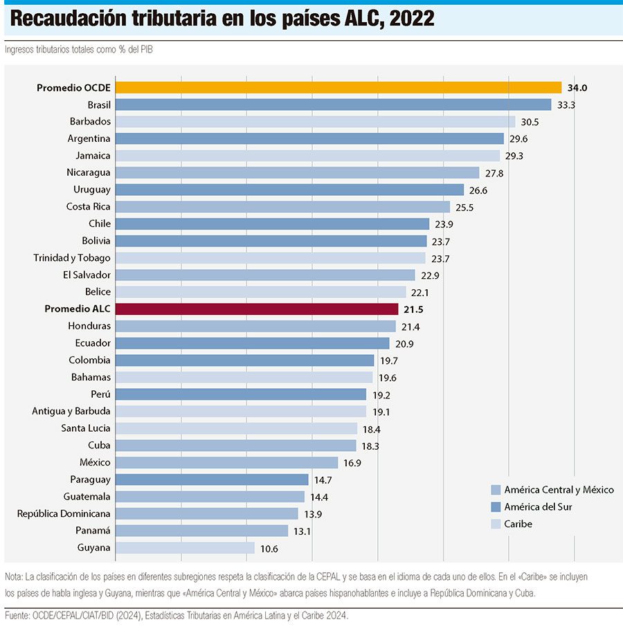 La Comisión Económica para América Latina y el Caribe (Cepal) destaca que una de las principales barreras para una mayor movilización de recursos internos en la región es el elevado nivel de evasión fiscal. Los datos disponibles a la fecha, según la institución, establecen que el incumplimiento tributario se ubicó en US$325,000 millones en 2018, equivalente al 6.1% del PIB.