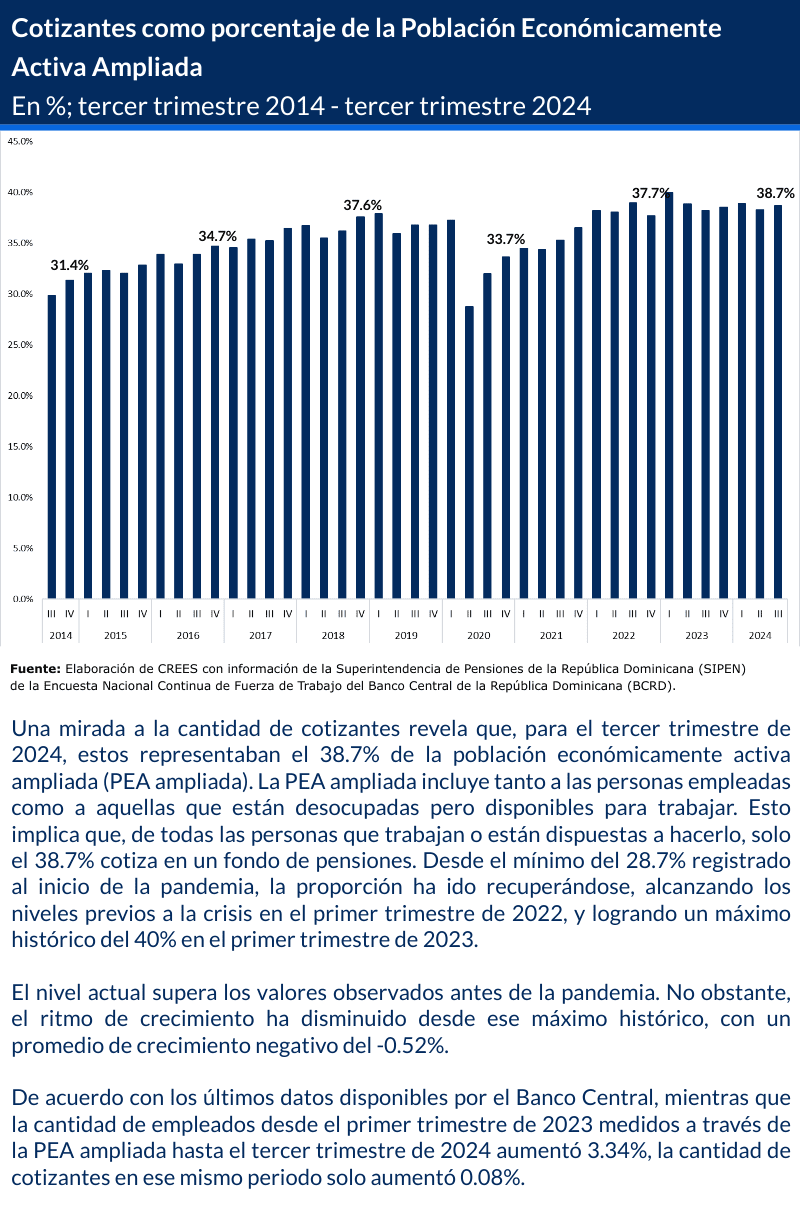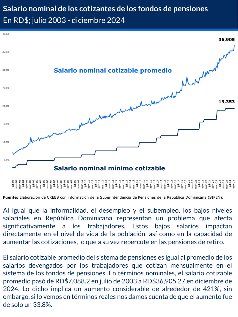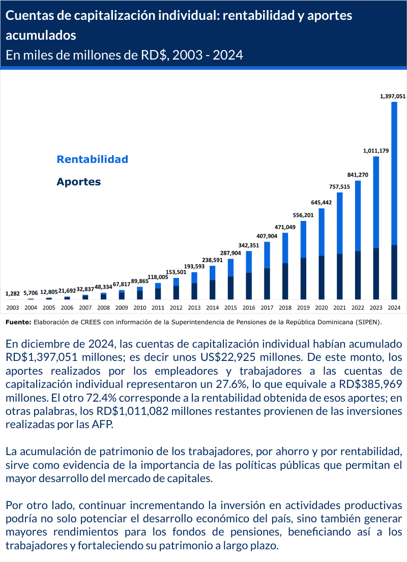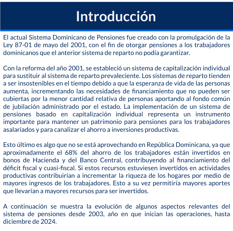 Autor: CREES Fecha: 24 de enero de 2025 Descargue aquí: Sistema de pensiones dominicano en gráficas (2003 – 2024) 1 archivo(s) 459.81 KB Descargar Vistas Totales 914 , Vistas Hoy 2 Compartir en Redes Sociales