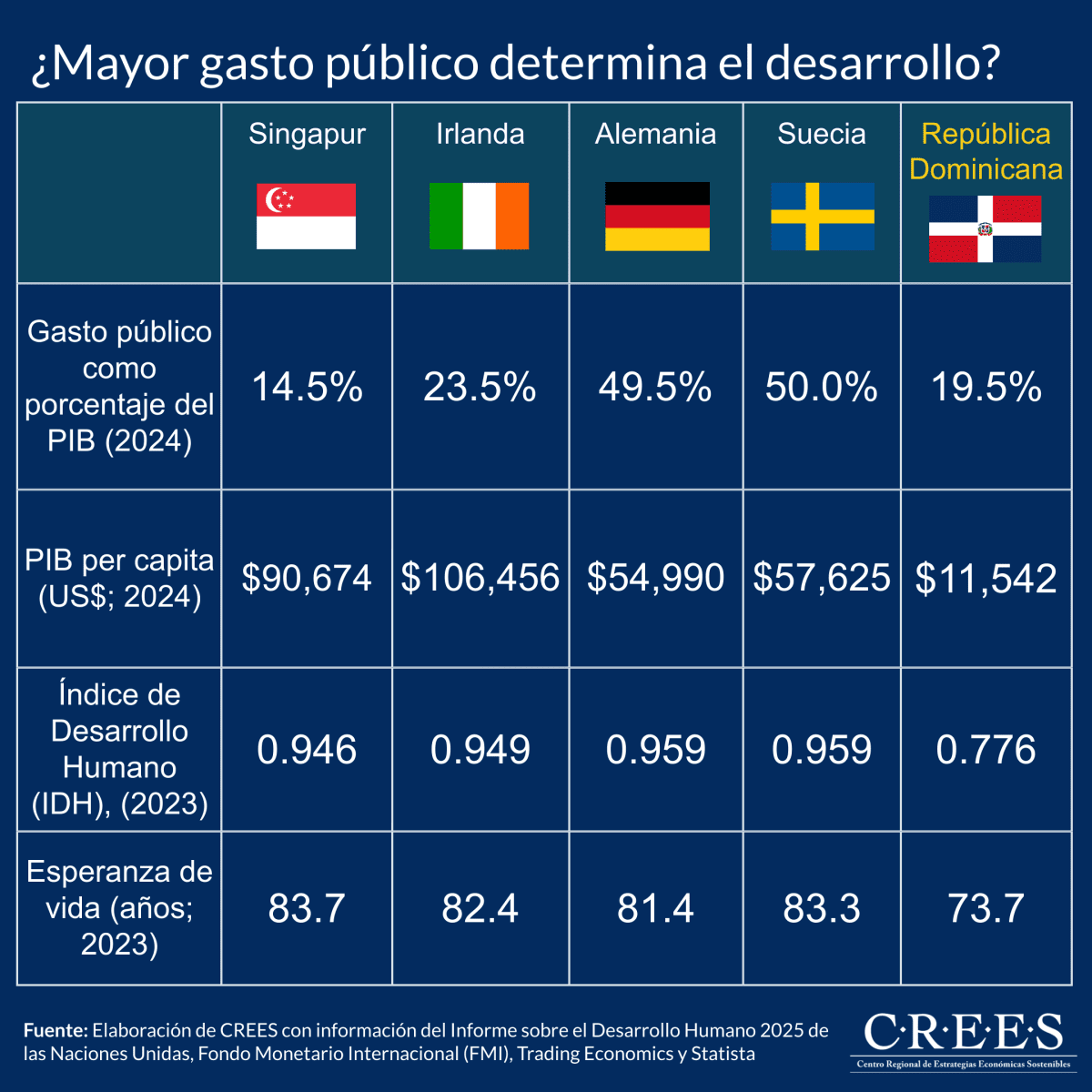 Casos como Singapur e Irlanda lo demuestran con claridad. A pesar de destinar solo el 14.5% y el 23.5% de su PIB al gasto público, respectivamente, estos países superan en ingreso per cápita e igualan en esperanza de vida y desarrollo humano a economías como Alemania o Suecia, cuyo gasto público ronda el 50% del PIB.