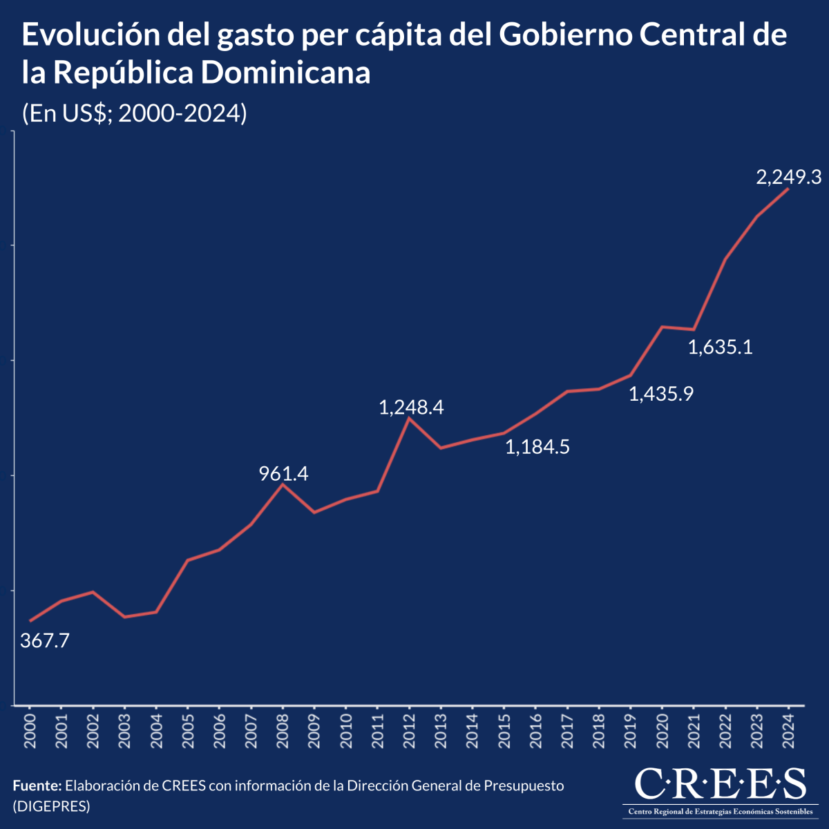 Las cifras son elocuentes: el gasto público por habitante ha aumentado de 368 dólares en el año 2000 a 2,249 dólares en 2024. Este crecimiento ha llevado a un incremento sustancial de la deuda, al punto que los intereses representarán el 28.8% del ingreso tributario proyectado para 2025, incluyendo las transferencias al Banco Central de la República Dominicana.