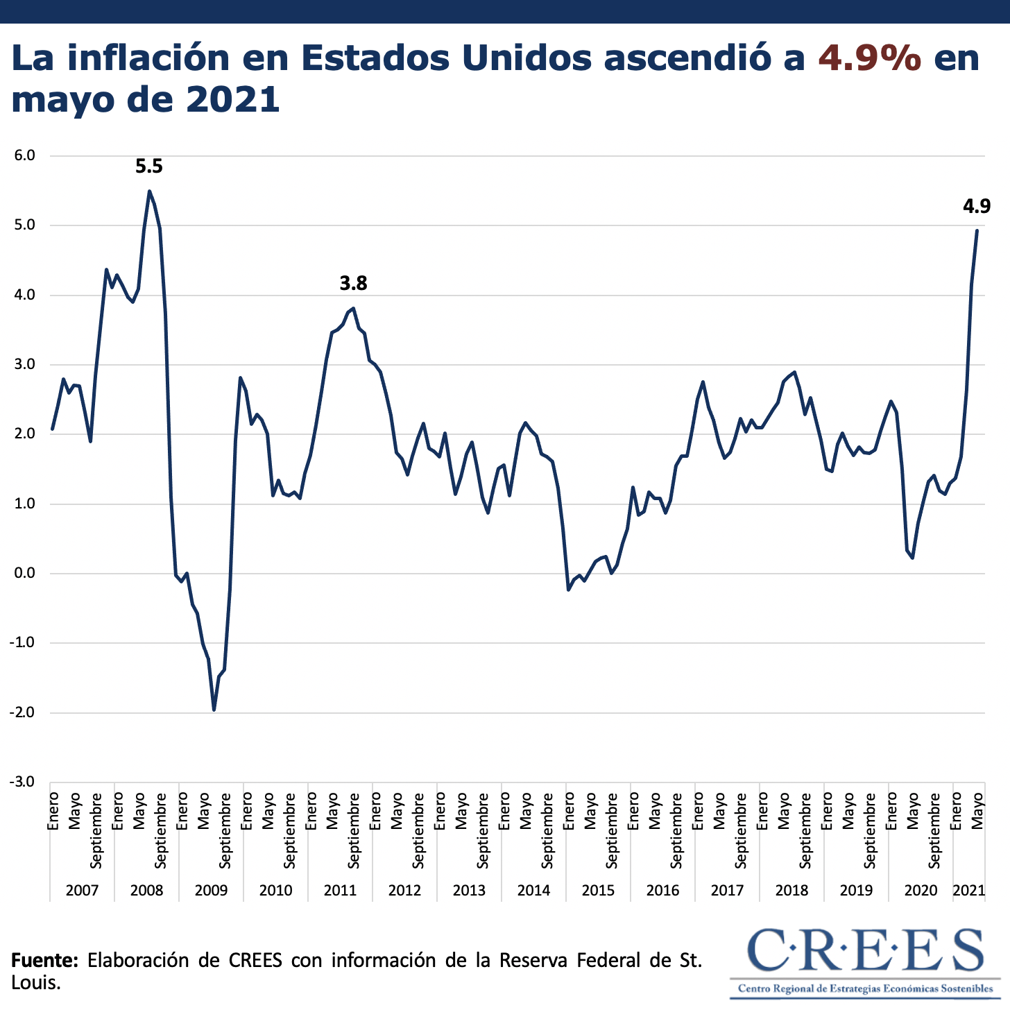 En mayo de 2021 la inflación interanual, es decir, la variación del Índice del Precios al Consumidor (IPC) con respecto a mayo de 2020 de Estados Unidos ascendió a...